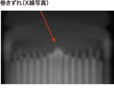 - ②リチウムイオン電池の内部は、正極や負極、セパレータが何層にも巻かれた精密な構造になっています。巻き方がずれていると,電流が流れにくい場所と流れすぎる場所ができ、バランスが崩れます。巻き方がずれた状態で充放電を繰り返すと、電極の一部でリチウムが金属のように析出し、内部で“見えないショートが起こることがあります。巻きずれは外からは見えませんが、電池内部の“見えない歪み”が電池の膨張や発煙になる恐れがあります。(下記参照)