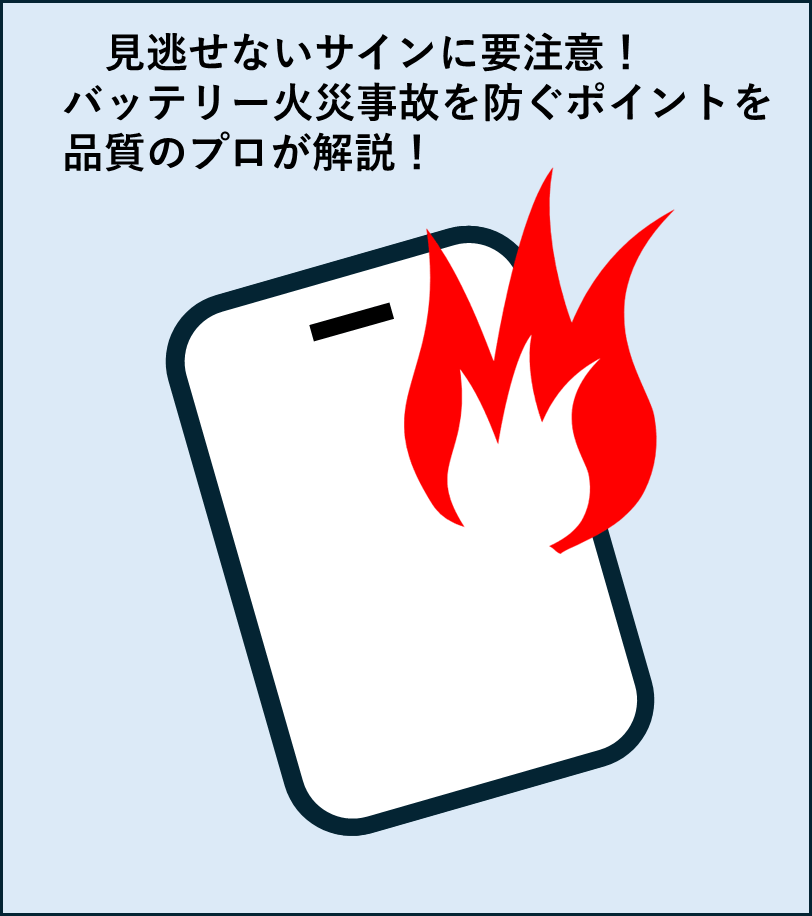 リチウムイオン電池の品質が不十分な場合、火災(発火・発煙)の事象の可能性がありますのでご注意ください。